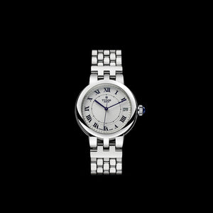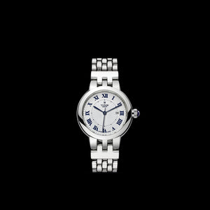 クレア ドゥ ローズは、洗練されたクラシックスタイルと時を超越した精神によって、ブランドの歴史的なデザインを備えている。スチール製で、6種類のバージョンと直径26mm、30mm、34mmの3サイズを展開するクレア ドゥ ローズは、浮き彫りの繊細な装飾が施されたオパラインダイアルを備えている。ブルーに艶出しされたローマ数字またはダイヤモンドを使ったインデックスがあしらわれている。