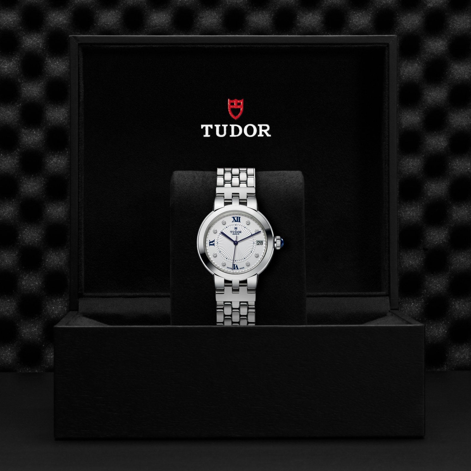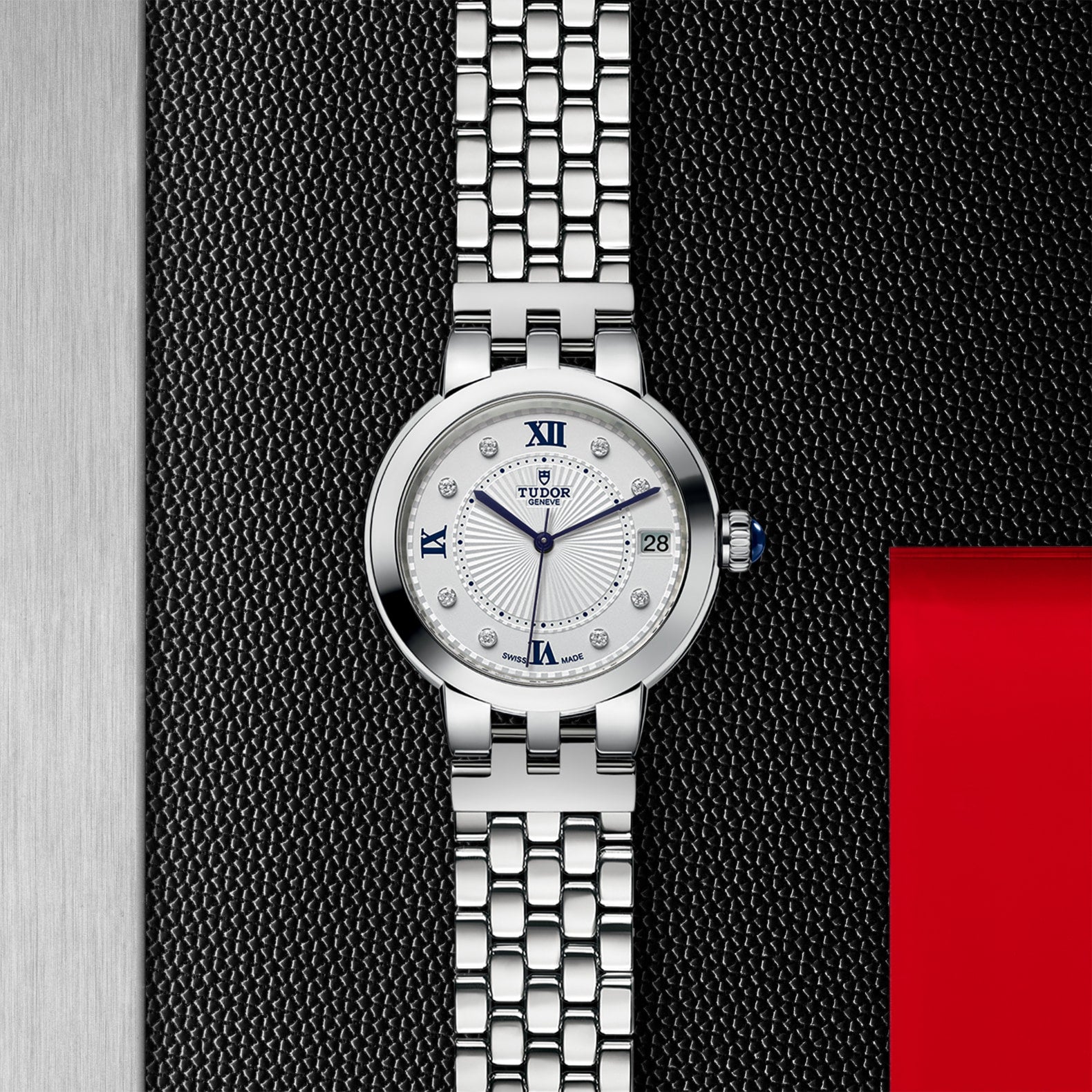 クレア ドゥ ローズは、洗練されたクラシックスタイルと時を超越した精神によって、ブランドの歴史的なデザインを備えている。スチール製で、6種類のバージョンと直径26mm、30mm、34mmの3サイズを展開するクレア ドゥ ローズは、浮き彫りの繊細な装飾が施されたオパラインダイアルを備えている。ブルーに艶出しされたローマ数字またはダイヤモンドを使ったインデックスがあしらわれている。