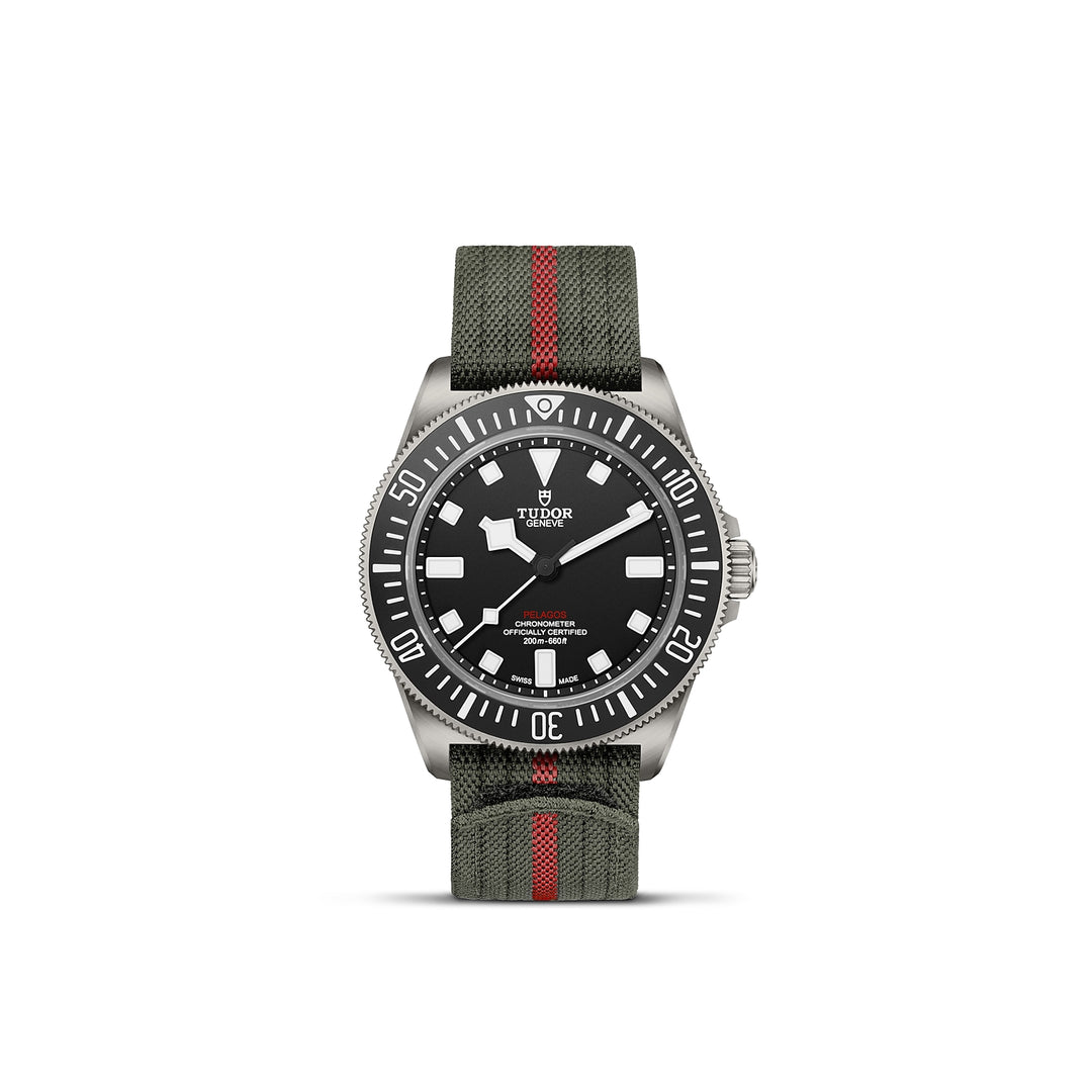 シリーズには、長年アメリカ海軍のダイバーたちの腕元で任務を支えたチューダーウォッチにオマージュを捧げるモデルも存在します。現代の究極の「ミリサブ」(ミリタリーサブマリーナーの略称)として、固定式ストラップバー、チタン製ケース、高性能マニュファクチュールキャリバー、経過時間計測が可能な逆回転防止ベゼルを備えています。